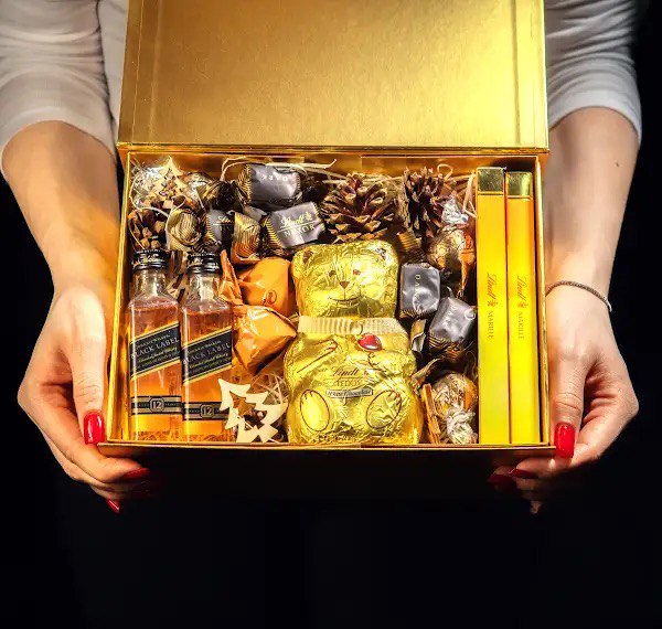 - Klasyczne słodkie zestawy firmowe – eleganckie praliny lub czekolady rzemieślnicze, gotowe do wręczenia.