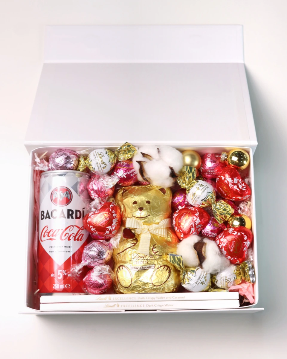 Nowoczesny i pełen uroku prezent w jasnym pudełku, inspirowany włoskim stylem i elegancją Mediolanu. Subtelne kolory, słodycze Lindt i delikatne akcenty tworzą kompozycję, która zachwyca lekkością i wyczuciem smaku. Idealny upominek dla kobiety z klasą.