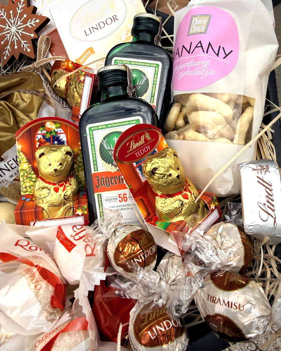 Każdy zestaw zawiera asortyment cukierków, batoników, czekolady i innych słodyczy. Skład zależy od wybranego zestawu. Szczegółowy opis znajduje się na stronie każdego produktu.