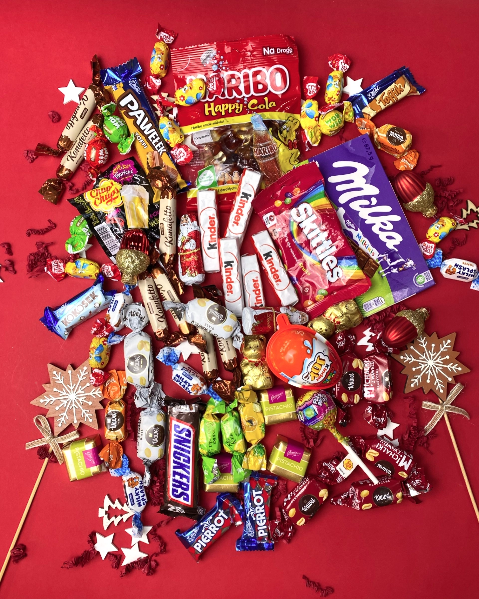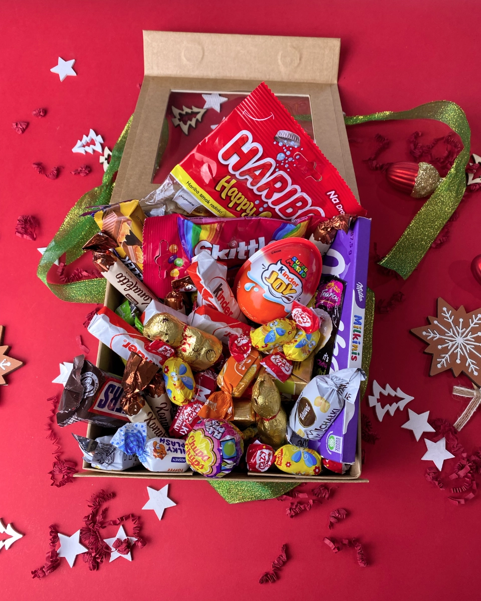 Każdy zestaw zawiera asortyment cukierków, batoników, czekolady i innych słodyczy. Skład zależy od wybranego zestawu. Szczegółowy opis znajduje się na stronie każdego produktu.