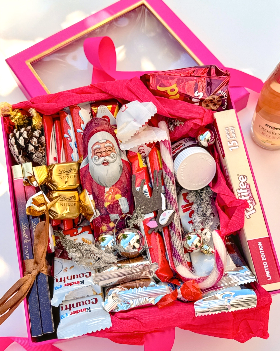 Słodki zestaw pełen świątecznych smaków, który wprowadza w wyjątkowy, bożonarodzeniowy nastrój. Połączenie czekolad Kinder, Nutelli, pralinek Ferrero Rocher oraz czekoladowego Mikołaja i cukrowych lasek tworzy prezent idealny na święta, który zachwyci zarówno dzieci, jak i dorosłych. To propozycja dla każdego, kto chce poczuć magię świątecznej słodyczy.