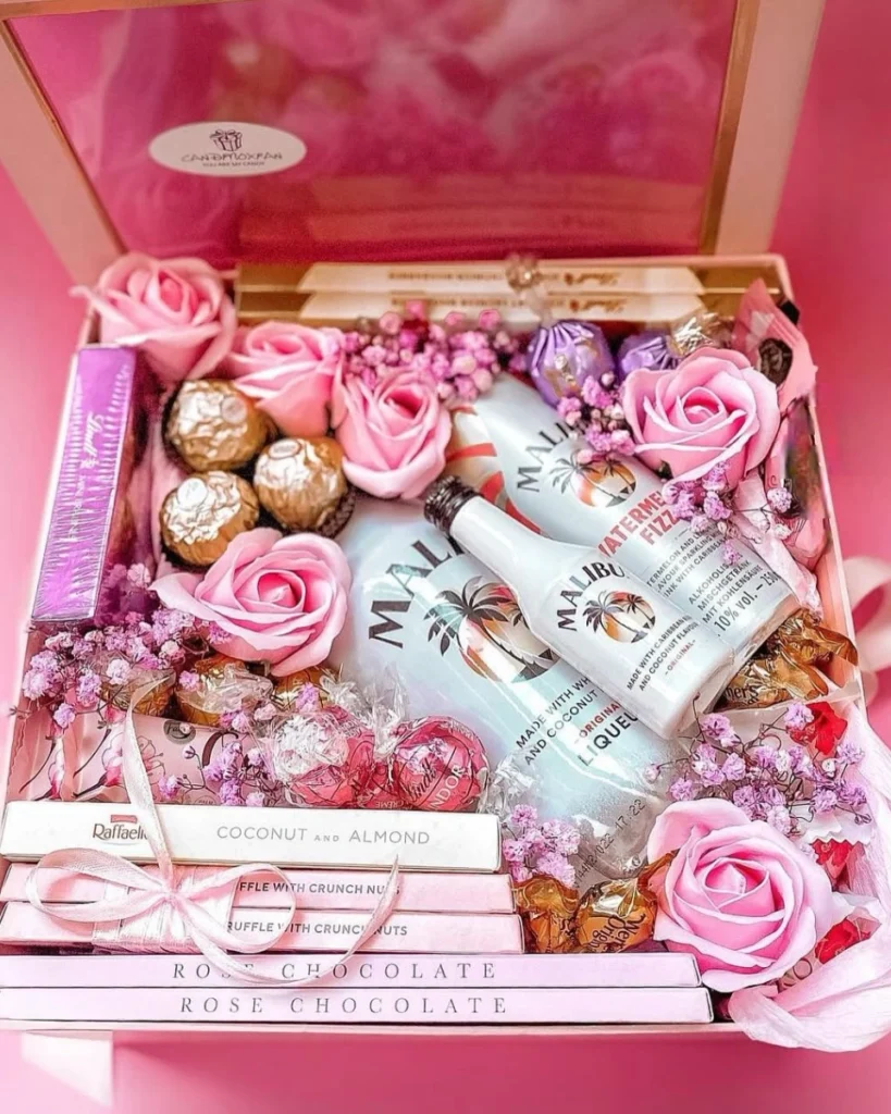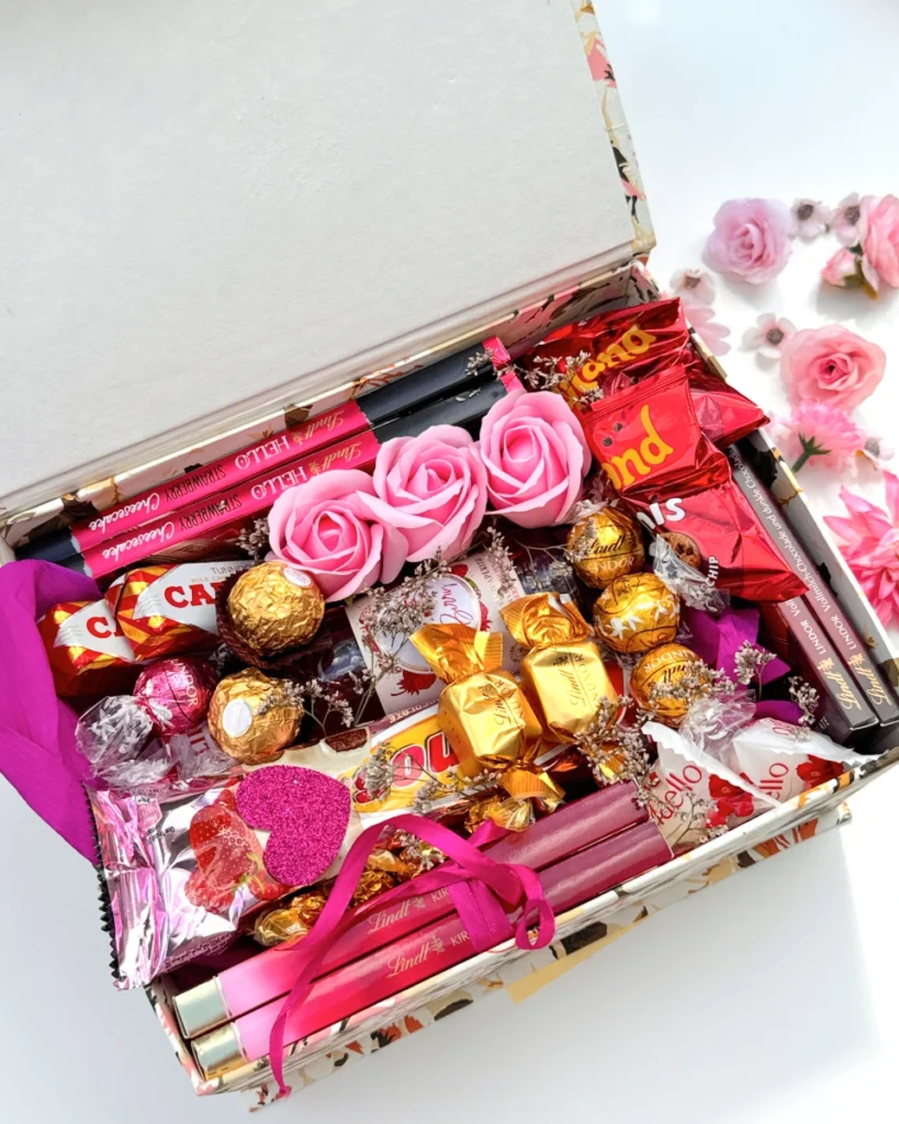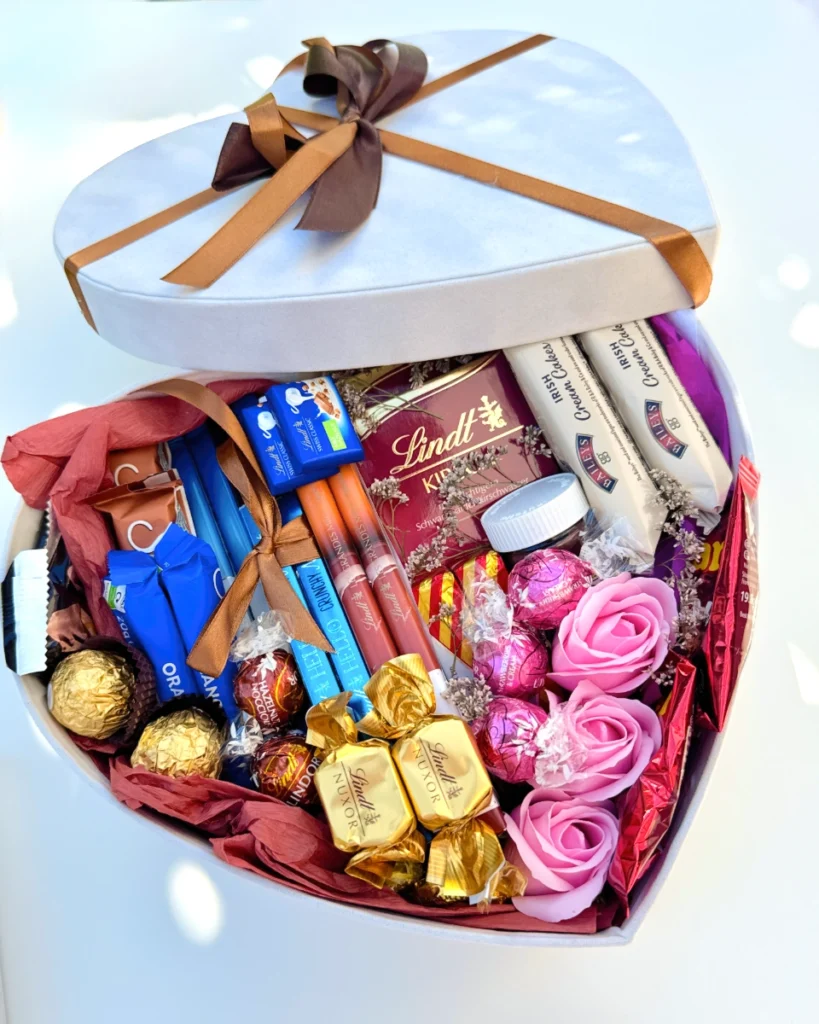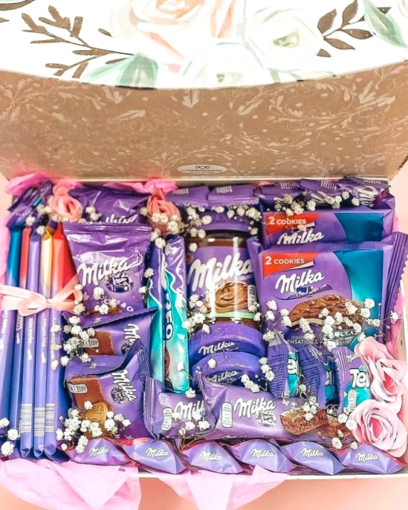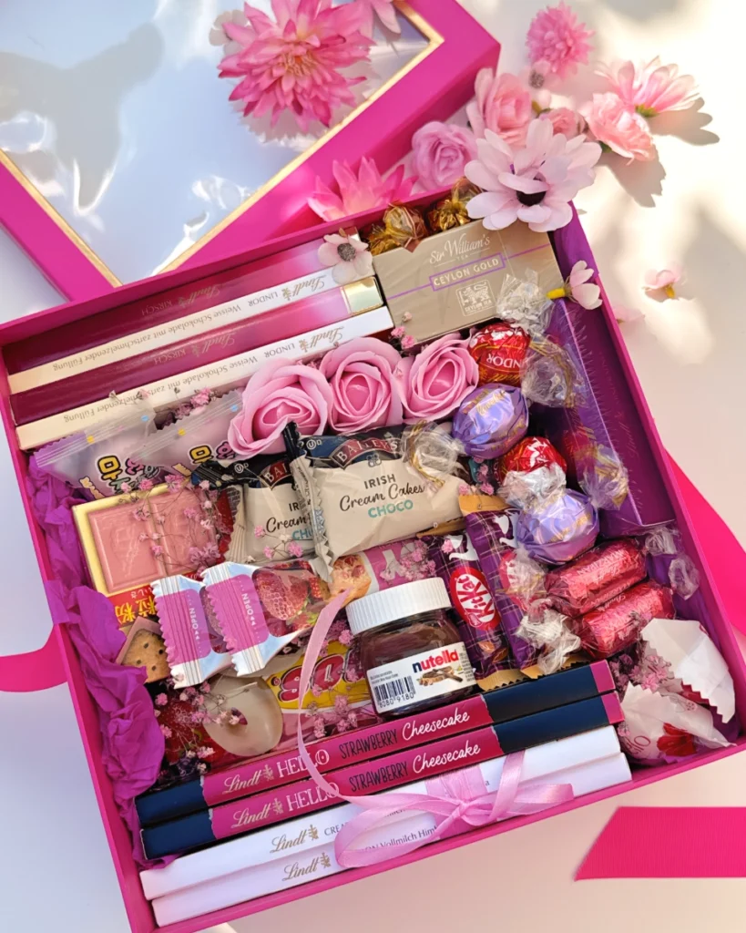 Nasze boksy mają nowoczesną, estetyczną formę — to stylowe pudełka o różnych kształtach, wielkościach i kolorystyce. W ich wnętrzu znajdują się produkty najwyższej jakości: zarówno ekskluzywne, importowane delikatesy, jak i wyroby z polskich manufaktur. Wśród nich można znaleźć bogaty wybór słodkości: czekoladki, praliny, bombonierki, cukierki, marcepany, bakalie, ciasteczka cynamonowe oraz ręcznie zdobione pierniczki.